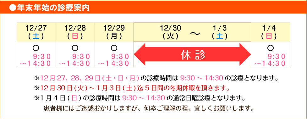 年末年始のご案内